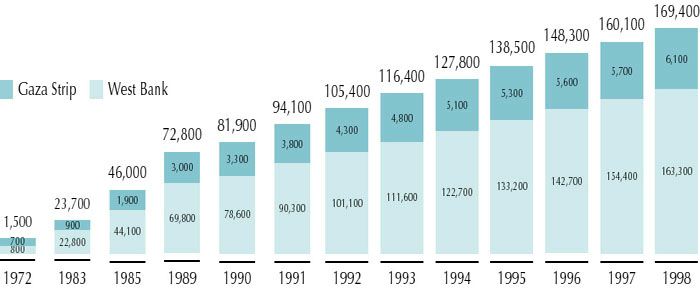 - 1983-87: Settlements grew to consume 40% of land in Gaza and